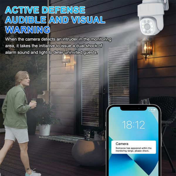 Rotating Security Camera Indoor Outdoor Universal with Wifi, 360° Rotating Dual Lens, IR Night Vision, for Home Security, Spotlight And Siren, Full HD Night Vision / Two-Way Talking / Motion Detection