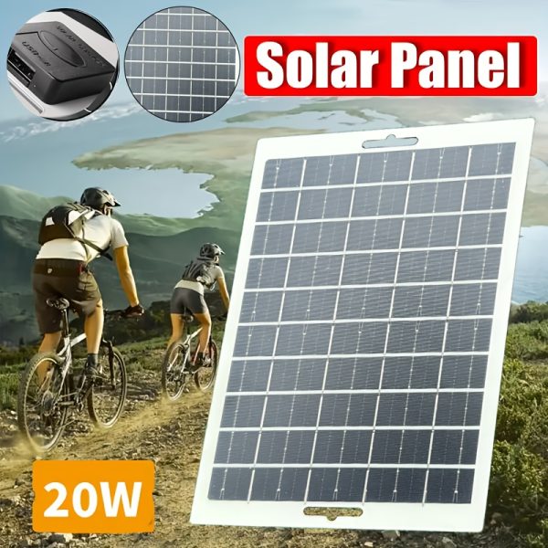 1pc 20W Portable Solar Panel Charger, 5V USB Stable Power Output, Ideal for Travel & Camping, Outdoor Solar Charging for Phones, Flashlights & Fans – Non-Removable Photovoltaic Battery Charger