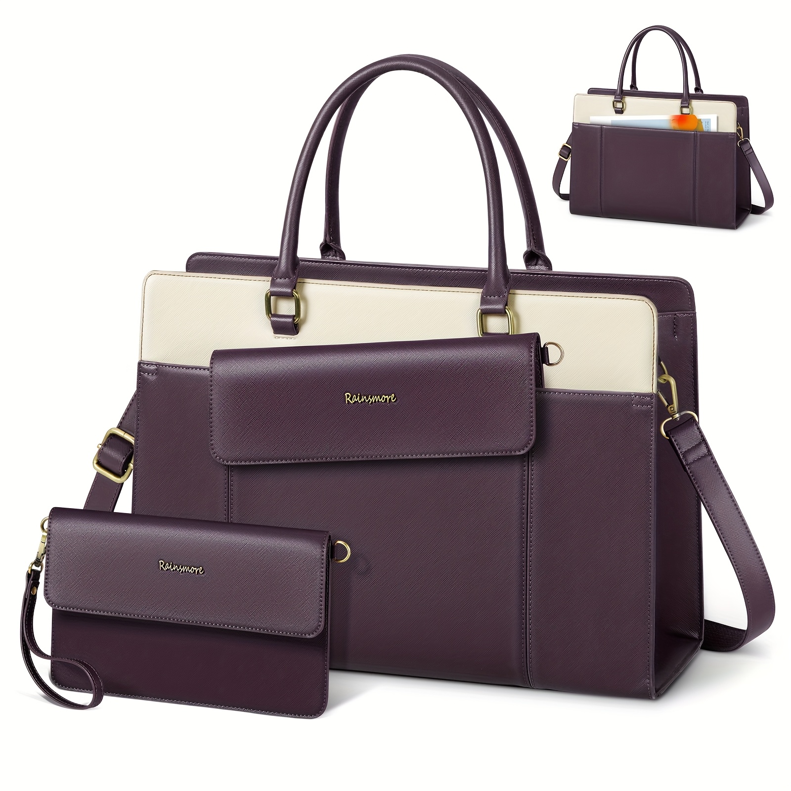 Introducing the 2pcs SDYSM Water-Resistant Laptop Bag Set for Women, 39.62cm Tote with Laptop Compartment, Polyester Lined, Includes Satchel Purse and Cosmetics Bag, Business Office Work Briefcase – B