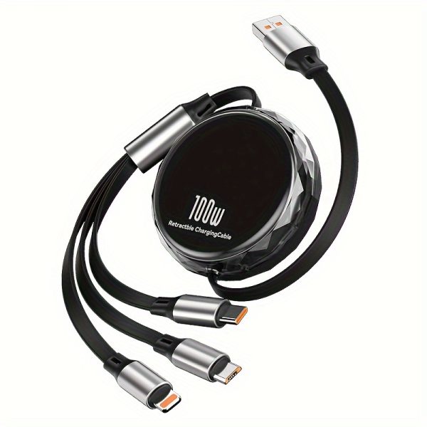 Introducing the 3in 1 Retractable USB Charging Cable, 6A 100W Fast Charge, USB to Type C/Micro USB Compatible with iPhone 13/14/12/11/X, Huawei, Samsung, Data Sync 480Mbps, USB Powered, ≤36V, a perfec